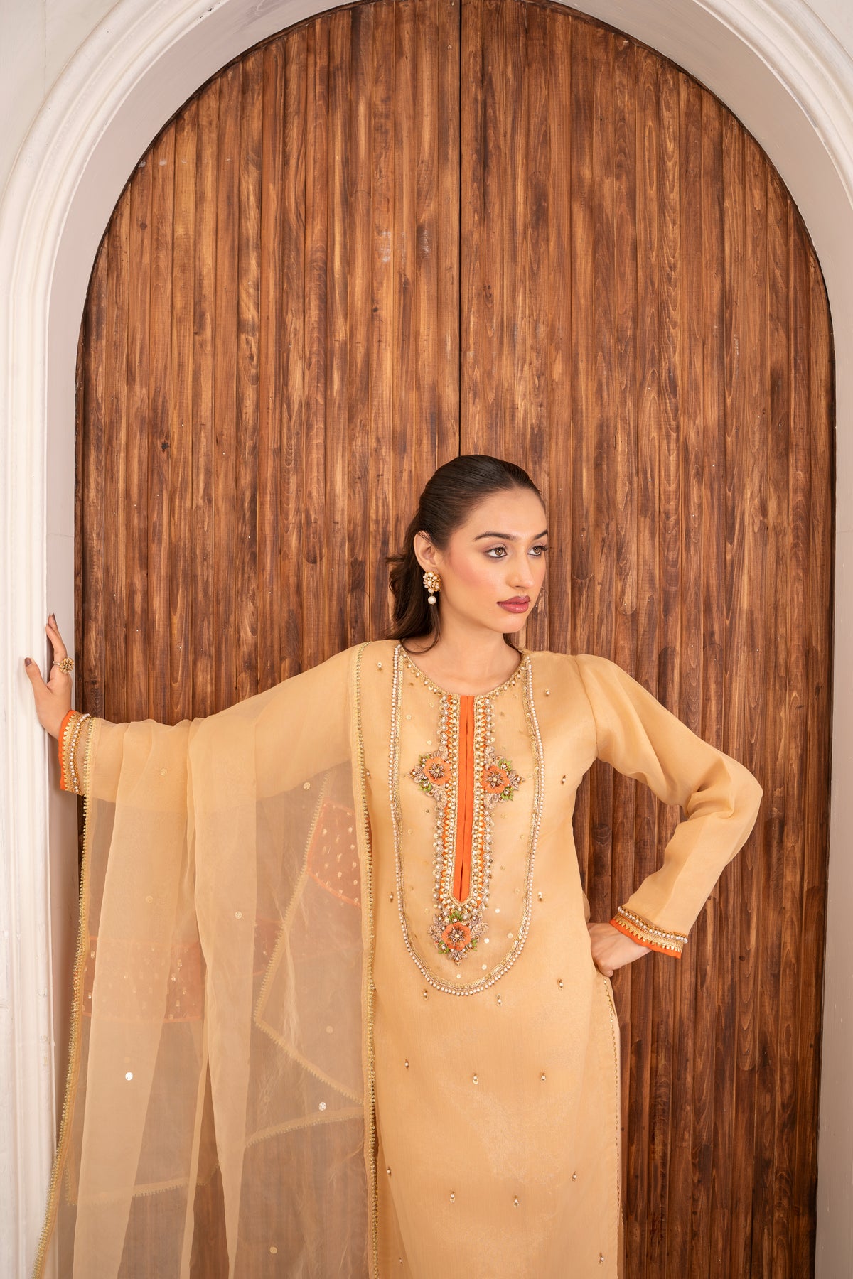 Dupatta: organza with bindi staff patch